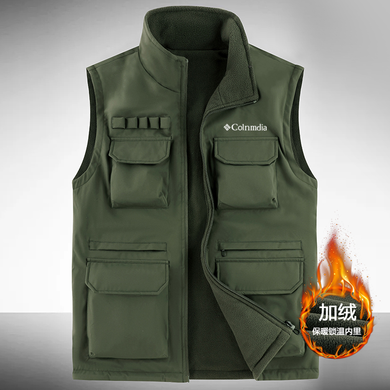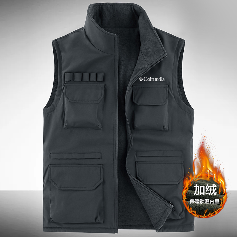 淘宝哥伦秋冬新款男士户外休闲运动马甲双面穿加绒保暖背心坎肩男外套