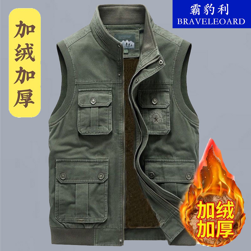 淘宝新款秋冬休闲纯棉男马甲秋冬多口袋户外摄影马夹加厚加绒背心外穿