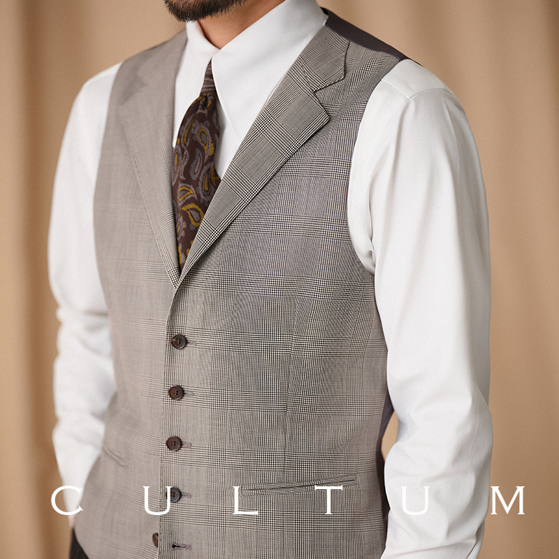 淘宝CULTUM ONE DAY精纺羊毛亲王格单排扣西装领免烫男士修身西装马甲
