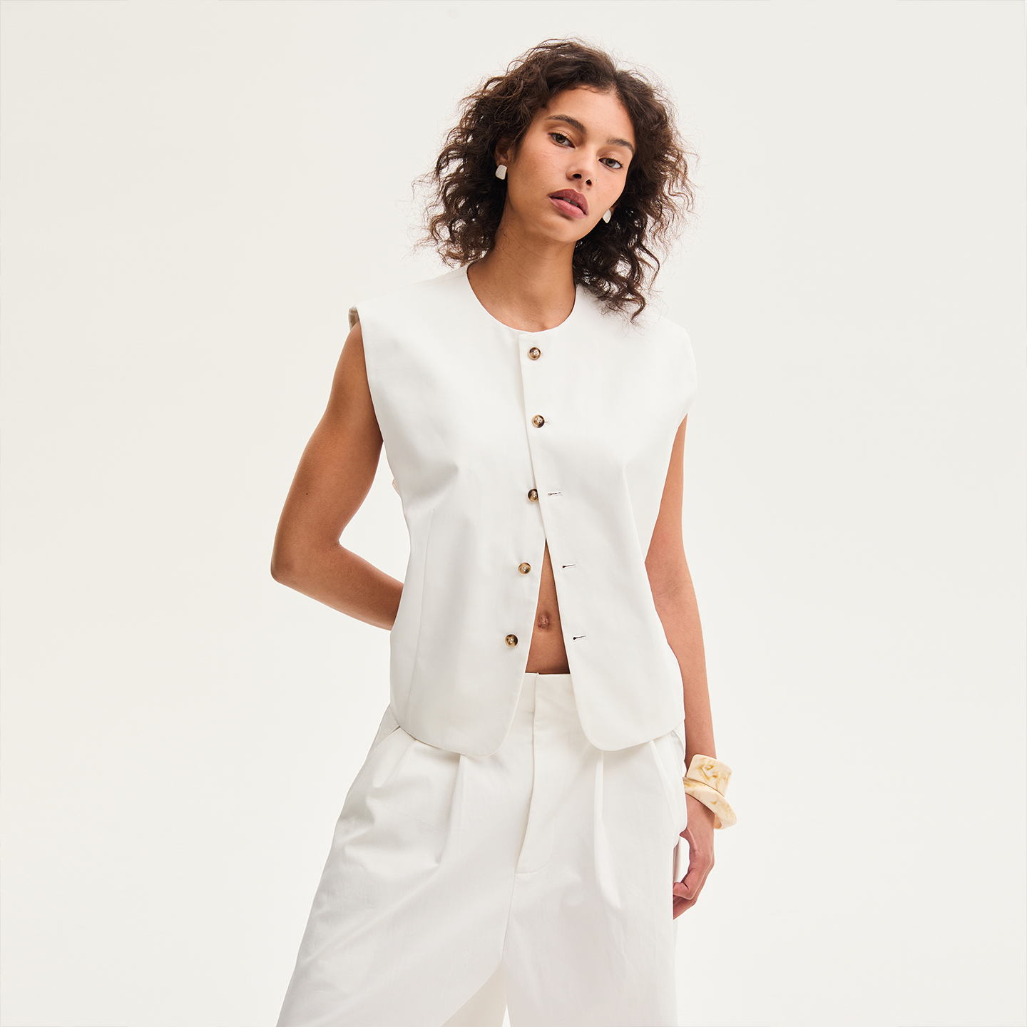 淘宝South Studio白色马甲25春夏新款商务休闲男女同款纯白圆领马甲