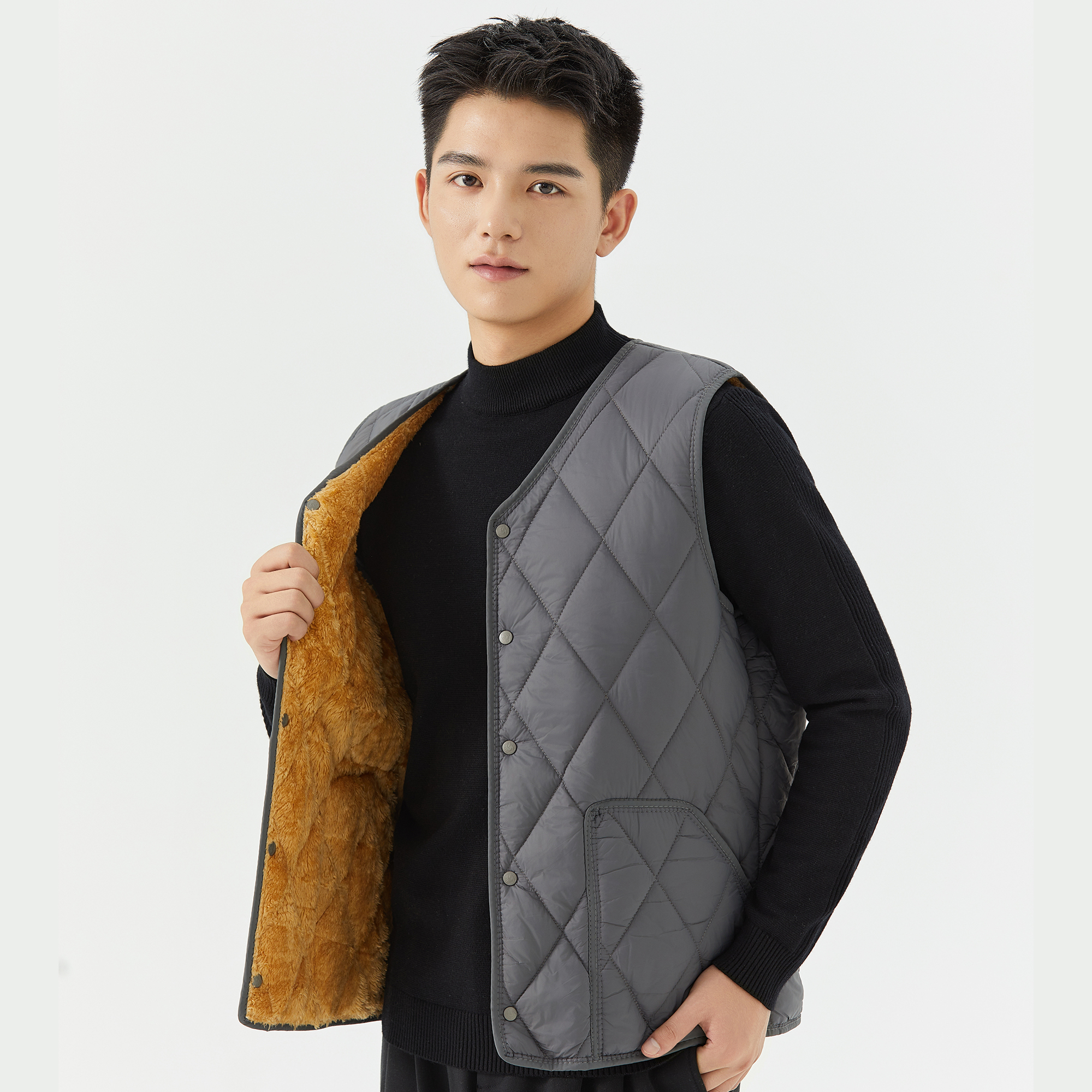 天双面穿秋冬季中老年人马甲男加绒加厚摇粒绒保暖背心爸爸爷爷装