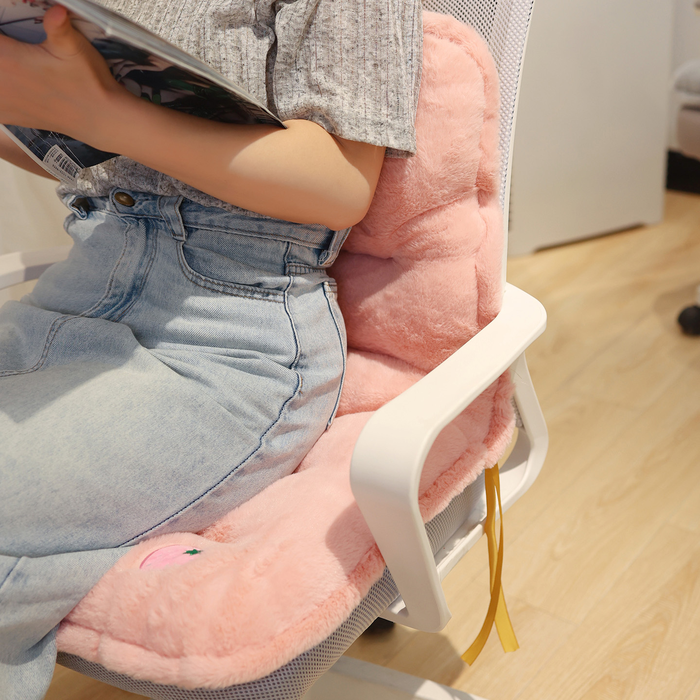 淘毛绒加厚黄熊草莓熊板凳座椅全包保暖坐垫靠垫宿舍靠垫办公室椅垫