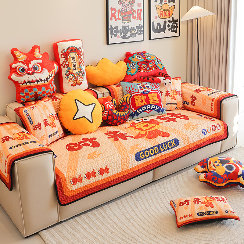 淘宝枕西湖 国潮卡通沙发垫四季通用新年沙发坐垫防滑可水洗沙发巾套