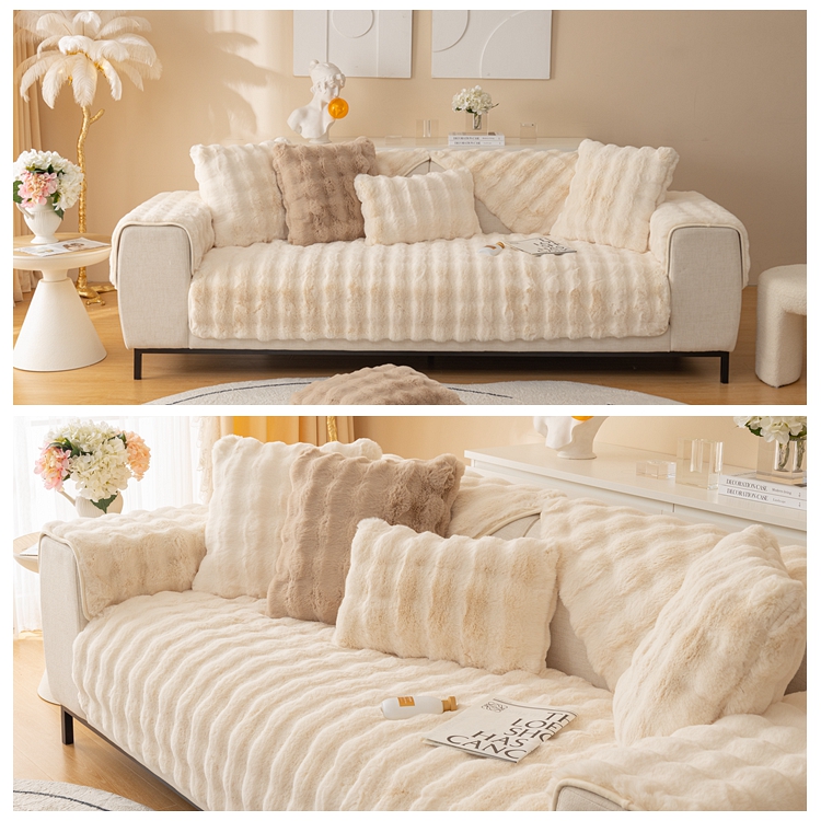 淘宝网红兔兔绒沙发垫2025秋冬季新款法式复古毛绒坐垫子固定防滑盖布