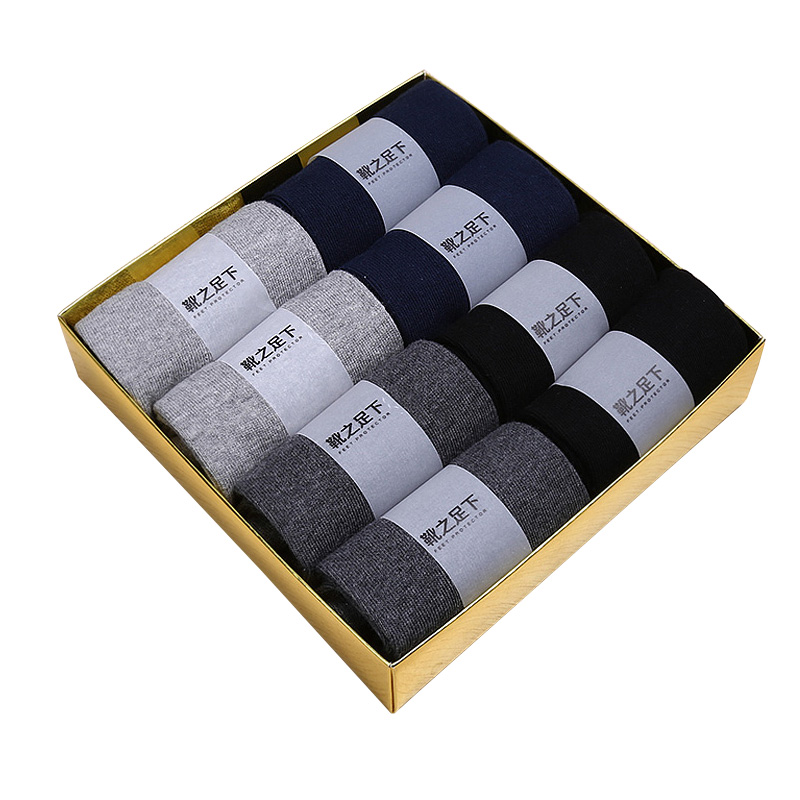 皮尔卡丹100%纯棉丝光棉四季男袜子防臭商务全棉中筒袜礼盒装棉袜