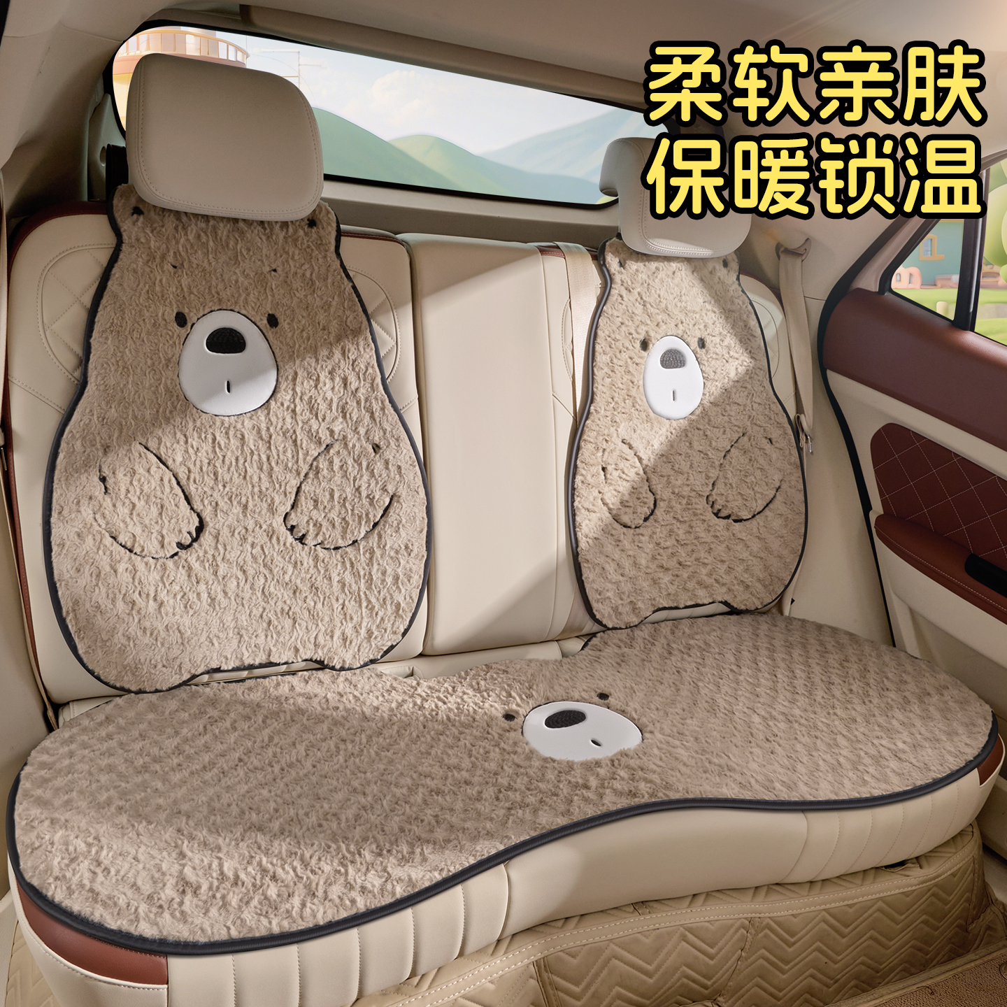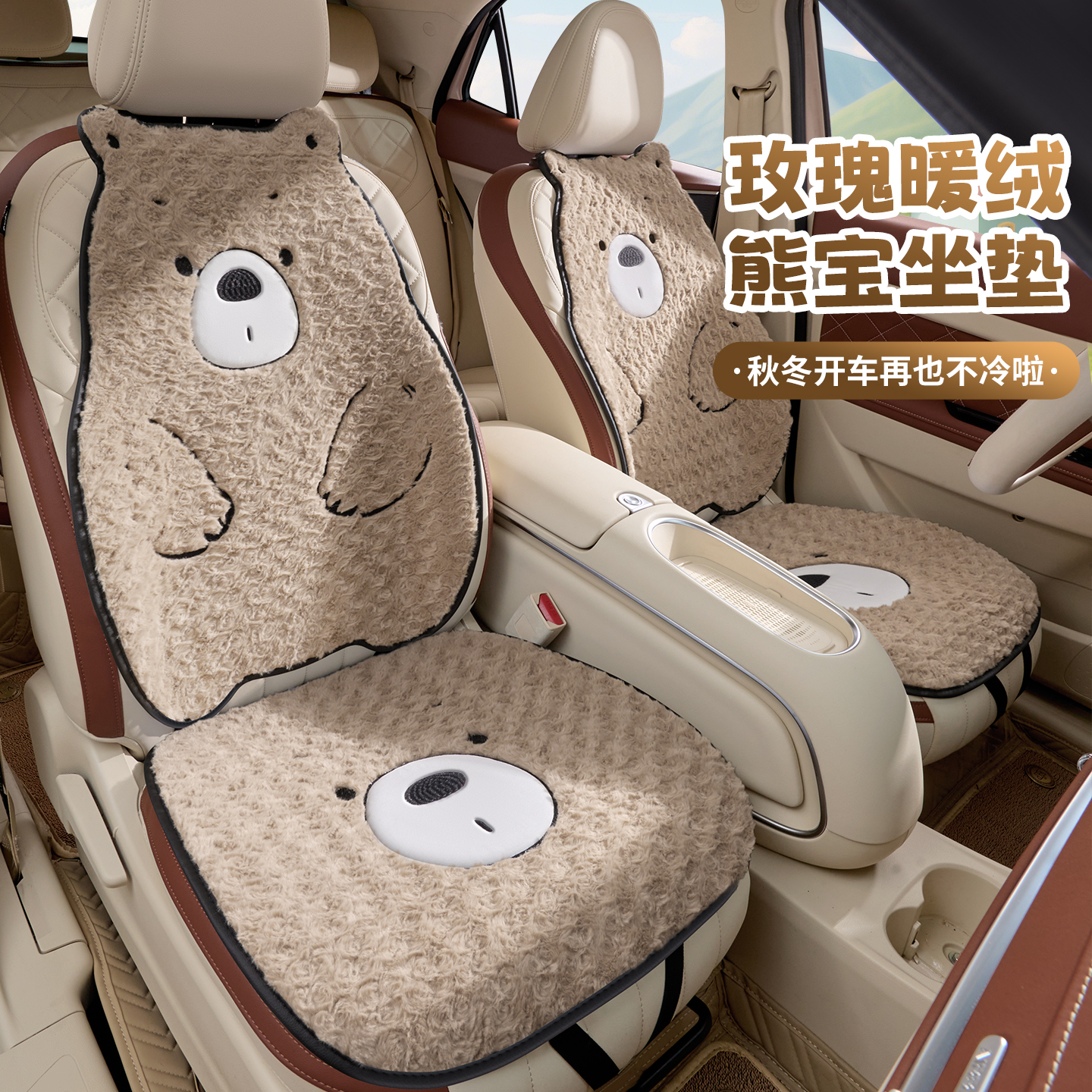 天猫冬季汽车坐垫毛绒网红女神可爱卡通小熊座垫半包小蛮腰车内车垫