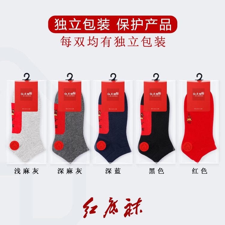 淘宝本命年男士袜底红色纯棉短袜马年秋冬季防臭中筒商务男袜喜庆红袜