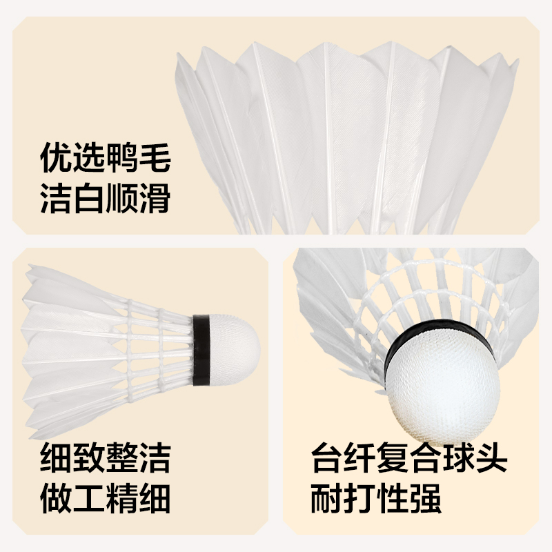 羽毛球3/6/12装耐打正品不易打烂鹅毛室内室外比赛防风训练用球
