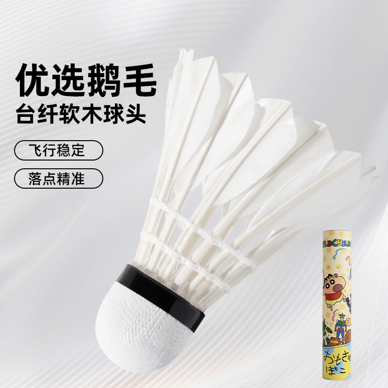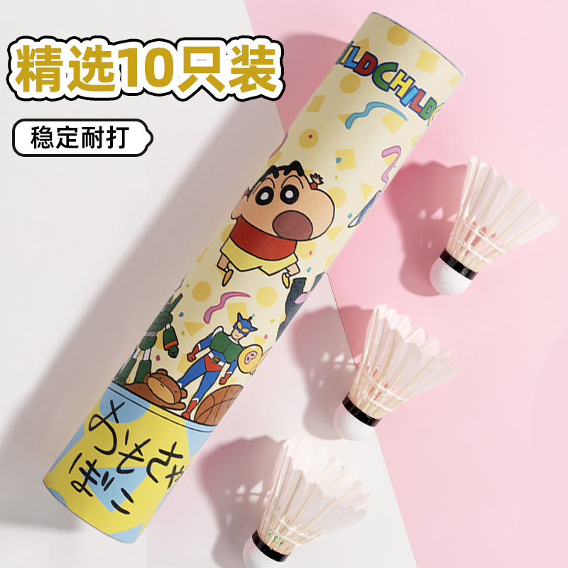 天猫WCC 蜡笔小新联名羽毛球专业耐打软木鹅毛室外训练专业用球10只装