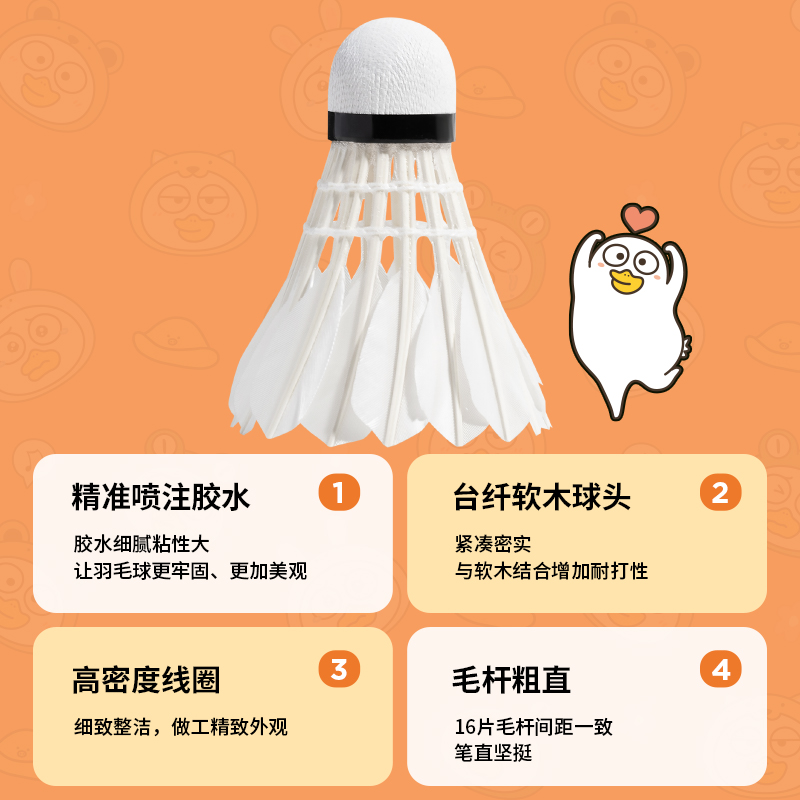 羽毛球防风耐打王鹅毛比赛球无标羽毛球训练软木羽毛球
