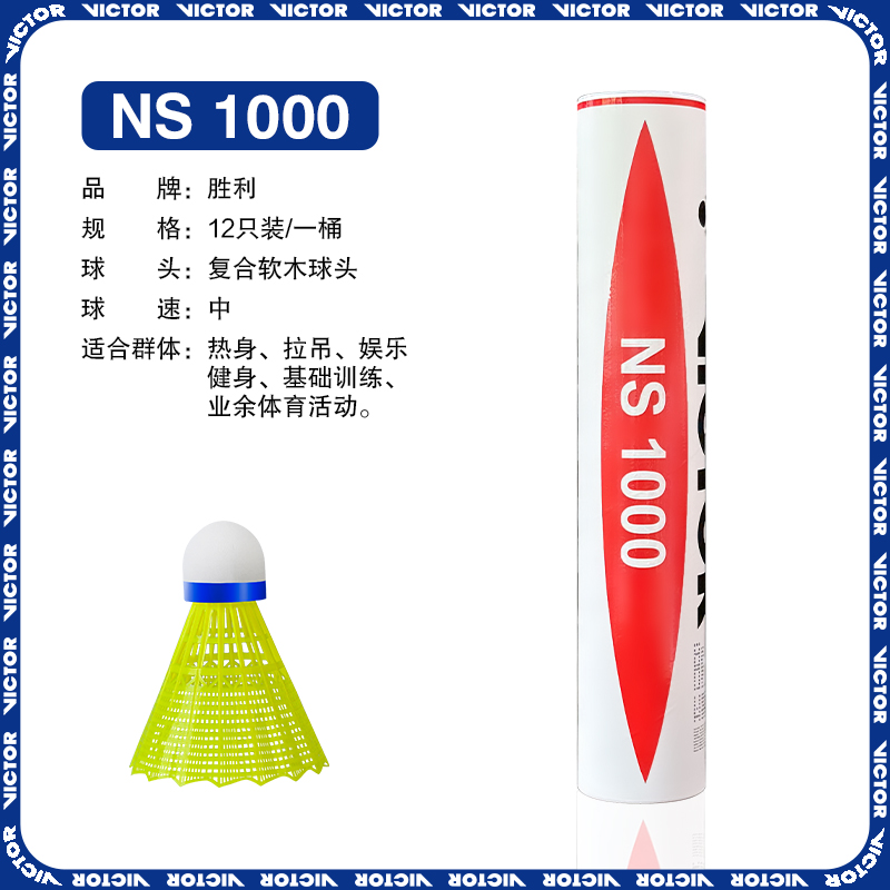 天猫威克多VICTOR胜利羽毛球NS1000耐打飞行稳定训练高性价比尼龙球