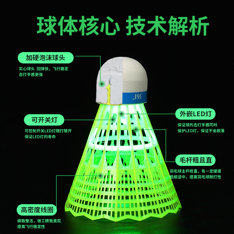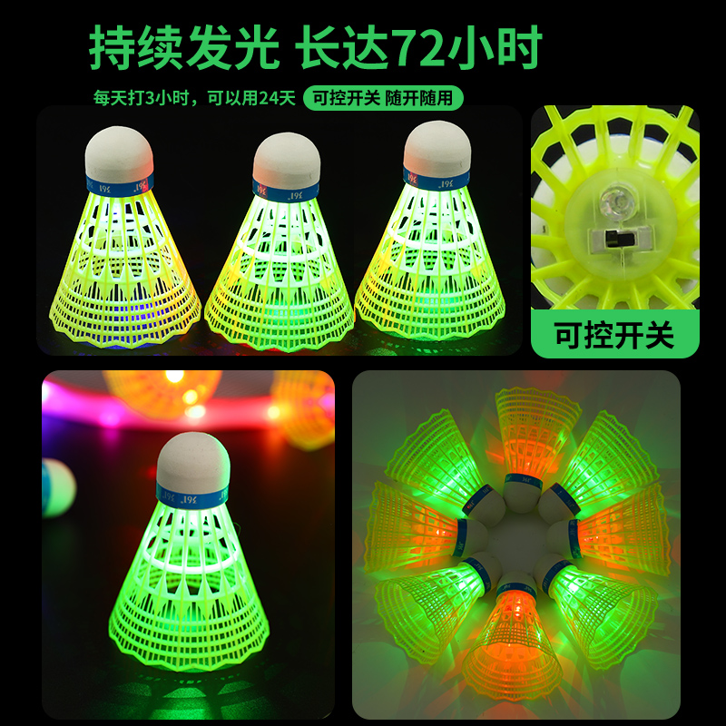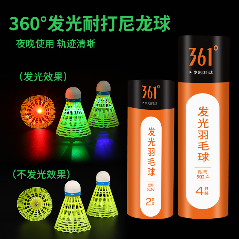 天猫361发光羽毛球夜光发亮带灯LED夜间鹅毛户外用荧光耐打塑料尼龙球