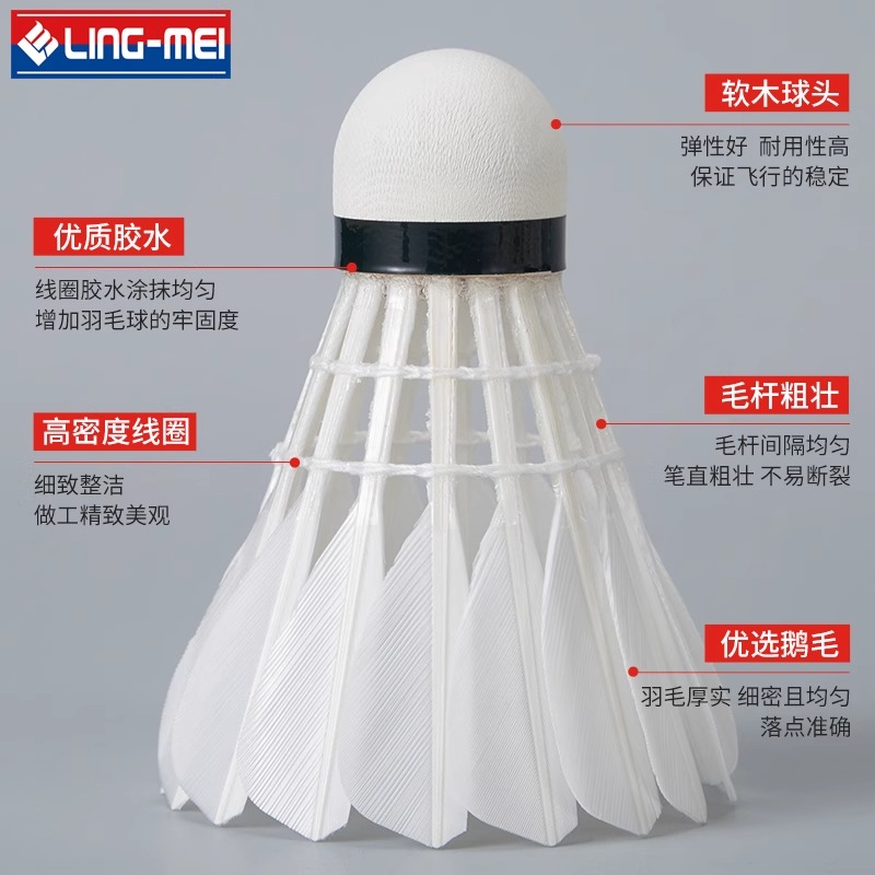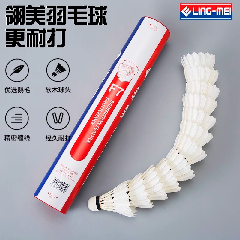 包邮翎美F6羽毛球耐打鹅毛球飞行稳定专业球馆训练比赛用球12只装