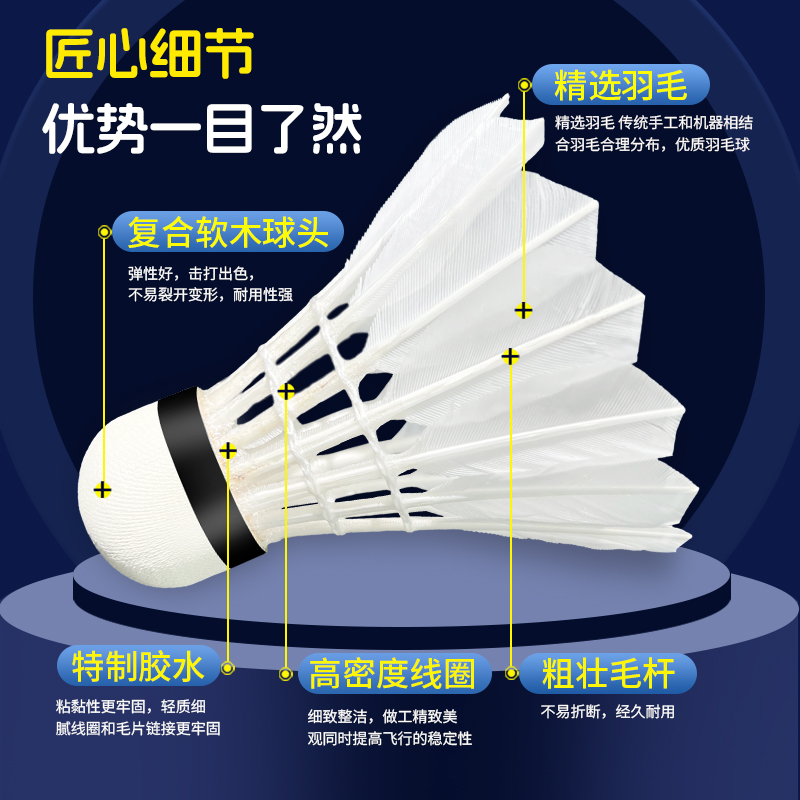 天?羽毛球耐打王40/50/60稳定防风耐用训练比赛12只装打不烂批