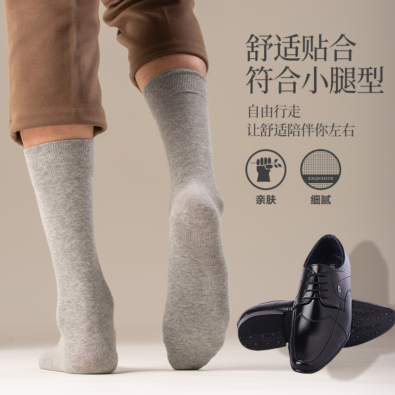 100%纯棉袜子男中筒吸汗防臭男袜黑色全棉袜商务皮鞋春秋长筒长袜
