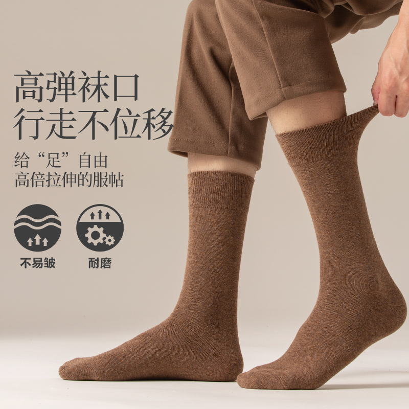 猫人2025新款男士袜子保暖中筒羊毛袜秋冬抗菌纯色休闲商务男袜