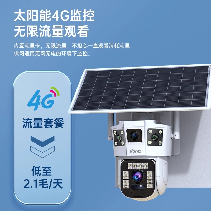 乔安太阳能送流量摄像头360手机远程室外高清夜视4G无电无网监控