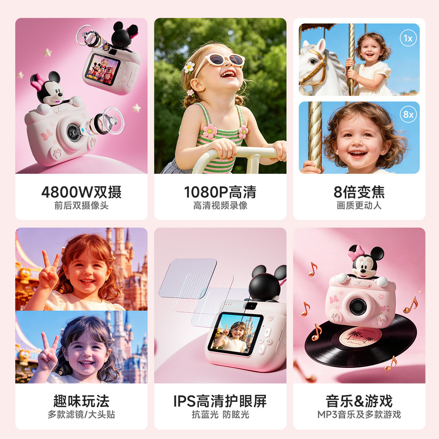 2026新款迪士尼儿童照相机,专为3-10岁宝宝设计,融合趣味与科技,是孩子探索世界的理想伙伴。采用高像素传感器,支持清晰拍照与流畅录像,操作简单,一键拍摄,激发孩子创作灵感。机身轻巧防摔,搭配迪士尼经典卡通图案,色彩鲜艳,童趣十足。内置多种趣味滤镜、贴纸和音效,让每张照片都充满惊喜。支持内存卡扩展,家长可轻松导出作品,记录成长点滴。安全材质,边角圆润,使用更安心。无论是生日、节日还是日常礼物,这款数码玩具都能带给孩子无尽的快乐与自信,培养观察力与艺术感,是送给宝贝的贴心好礼。
