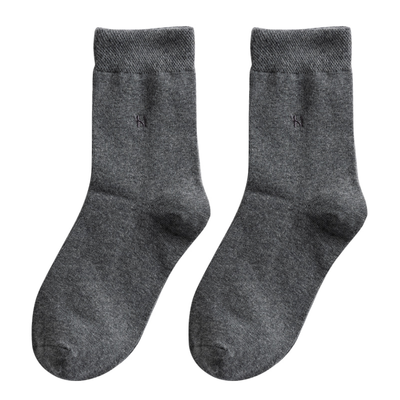 松口袜子男中筒秋冬厚款纯色商务男袜里外皆棉吸汗防臭男士袜子棉
