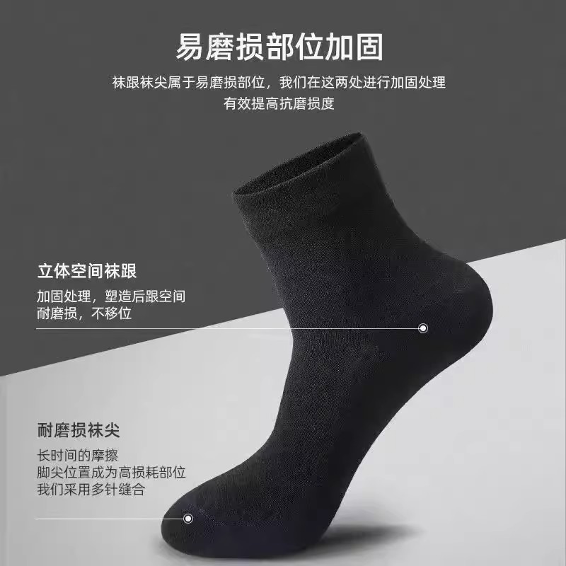 中筒男袜双针秋冬季加厚纯棉袜纯色吸汗商务男款防臭抗菌长棉袜