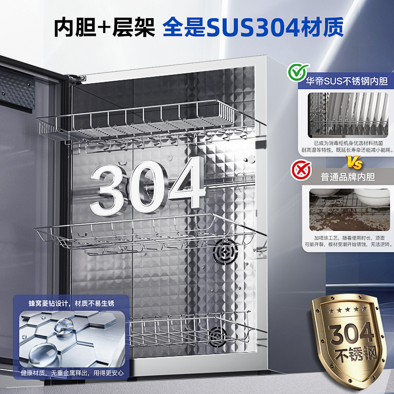 【全304内腔】华帝消毒柜家用小型大容量立式负离子紫外线碗柜