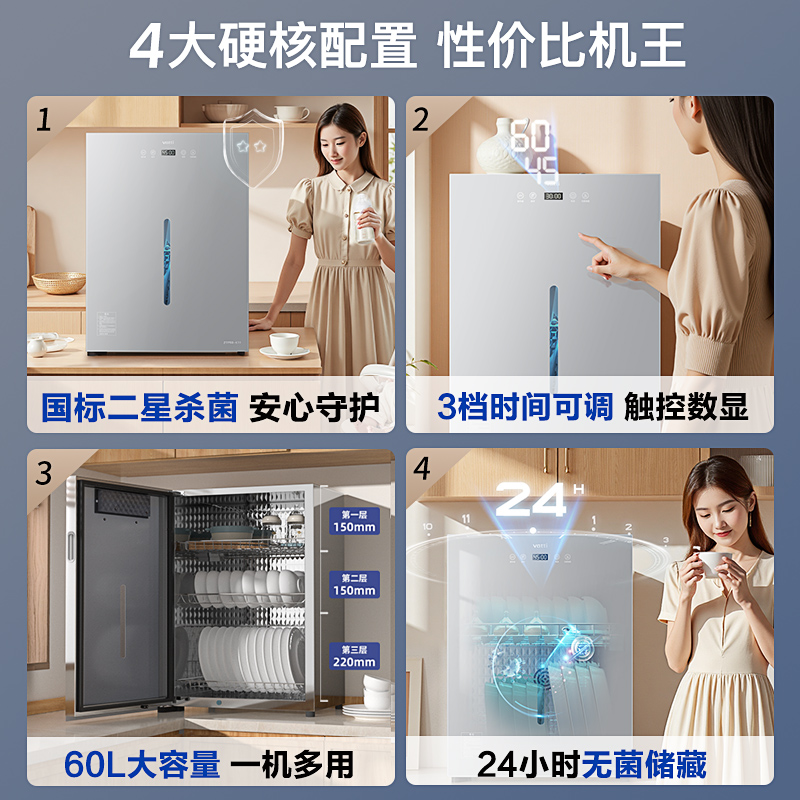 天[旗舰新品]老板大容量母婴级D2消毒碗柜家用嵌入式烘干消存一体