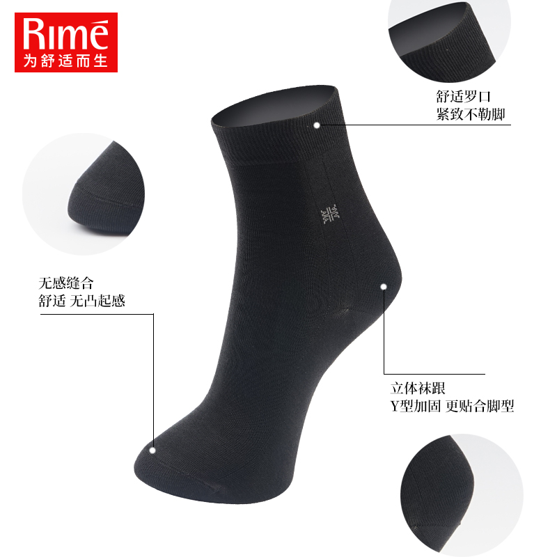 天猫RIME袜子男抗菌纯棉袜短袜全棉吸汗夏季薄款中筒商务男袜男士运动