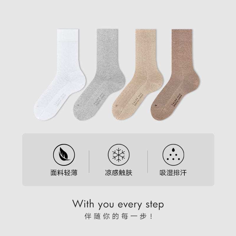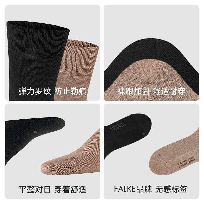天猫FALKE鹰客Sensitive London男士精梳棉休闲商务中筒棉袜男袜14719