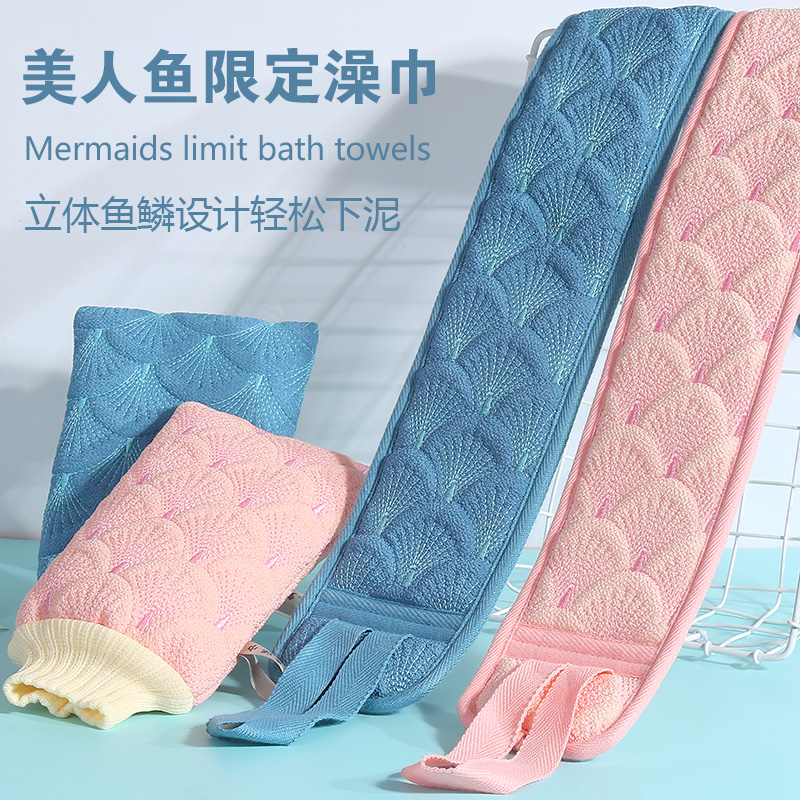 这是一款集时尚与实用于一身的搓澡神器——美人鱼强力搓澡巾。专为男女家庭洗浴设计,长条形状方便搓背,让您轻松解决后背清洁难题。其特有的强力材质,能够深入清洁肌肤,有效去除污垢和角质,让您的肌肤焕发自然光泽。更独特的是,其设计精细,使用后不会造成皮肤疼痛或刺激。这款澡巾是您洗澡时的最佳伴侣,让您在享受沐浴的同时,轻松拥有光洁肌肤。美人鱼搓澡巾,让您的沐浴体验更上一层楼!