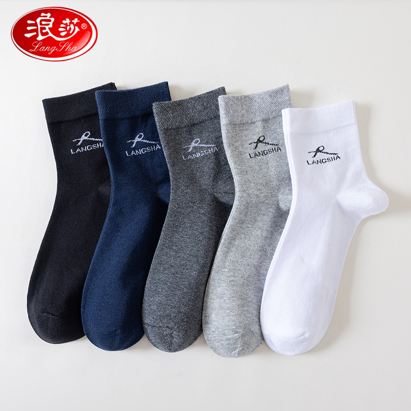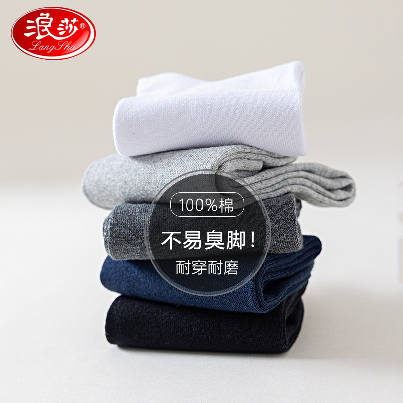 淘宝浪莎袜子男士纯棉中筒商务袜春秋吸汗透气男袜100%棉简约休闲长袜