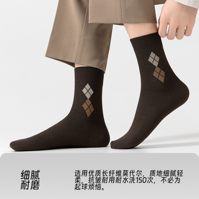 天猫莫代尔袜子男款冬季7a抗菌吸汗防臭商务男袜抗起球秋冬男士中筒袜