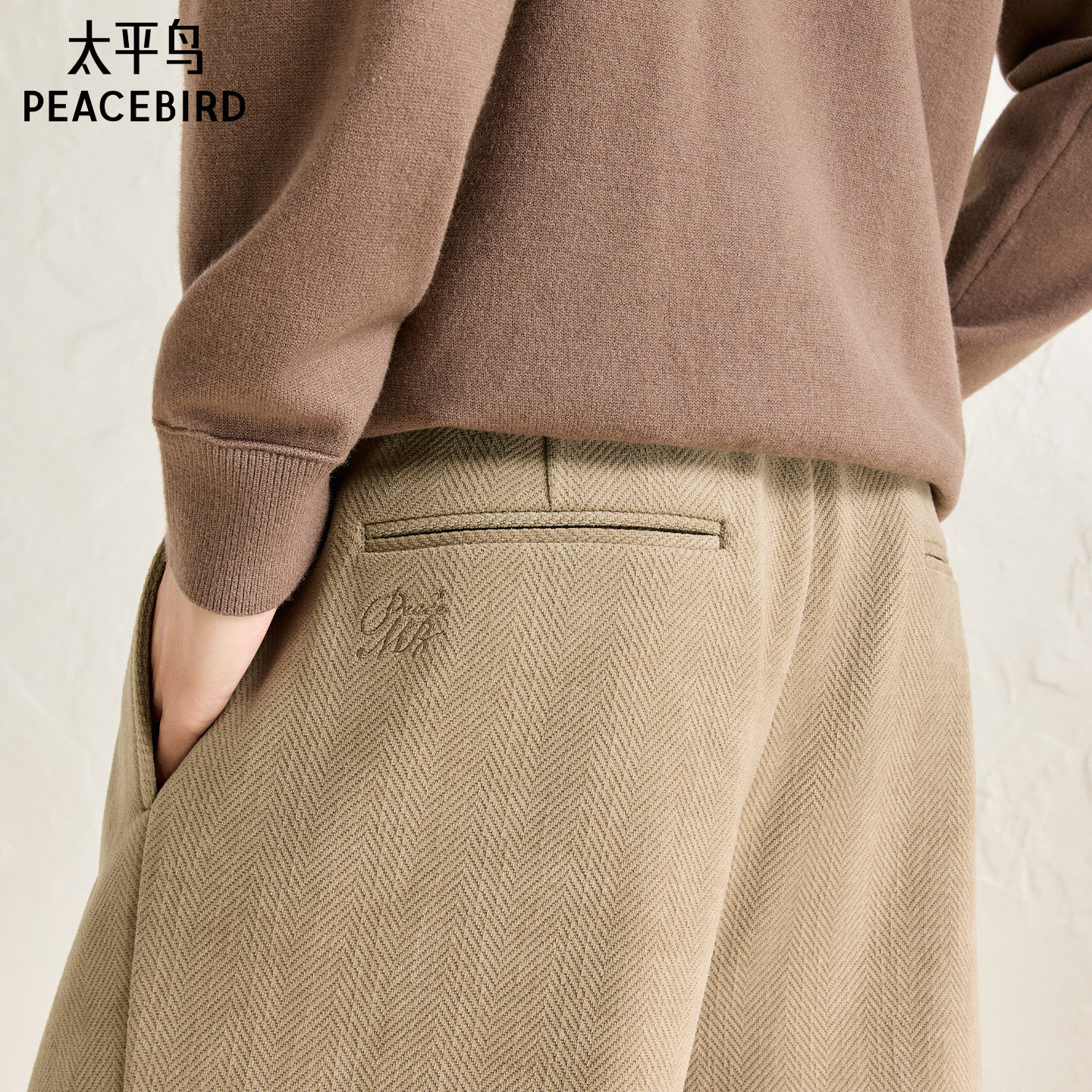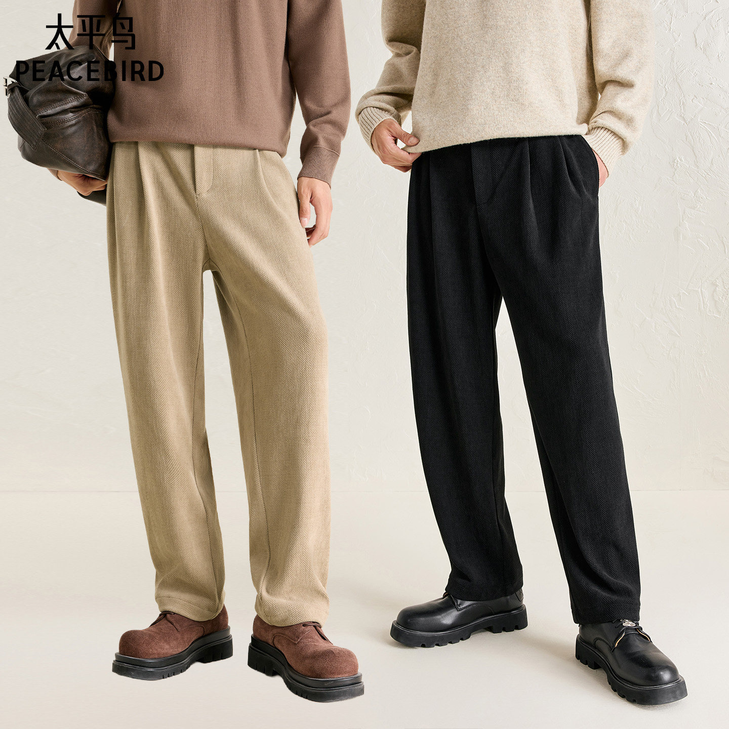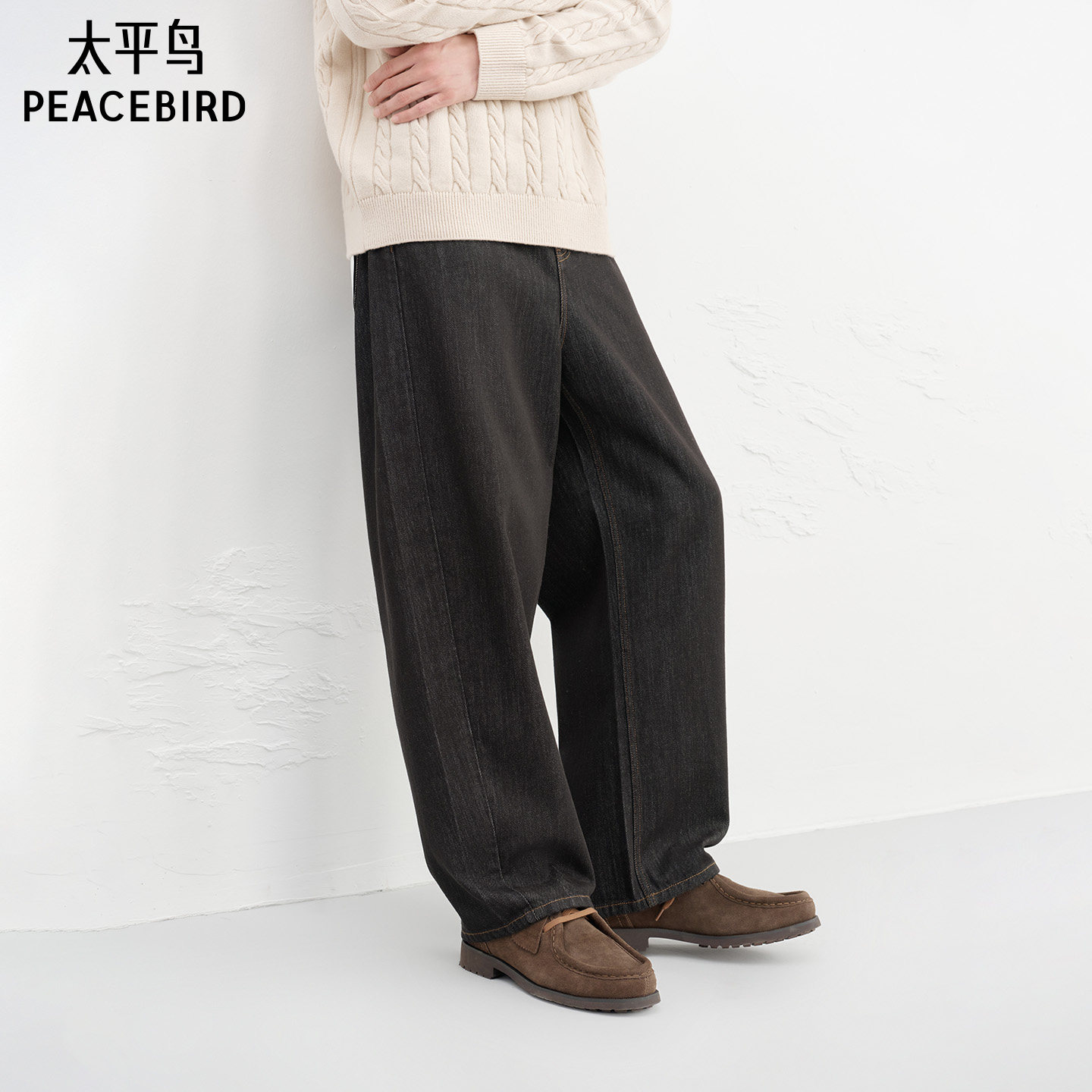 天猫太平鸟男装 春季宽松洋气明线牛仔裤/肌理直筒质感时尚休闲裤