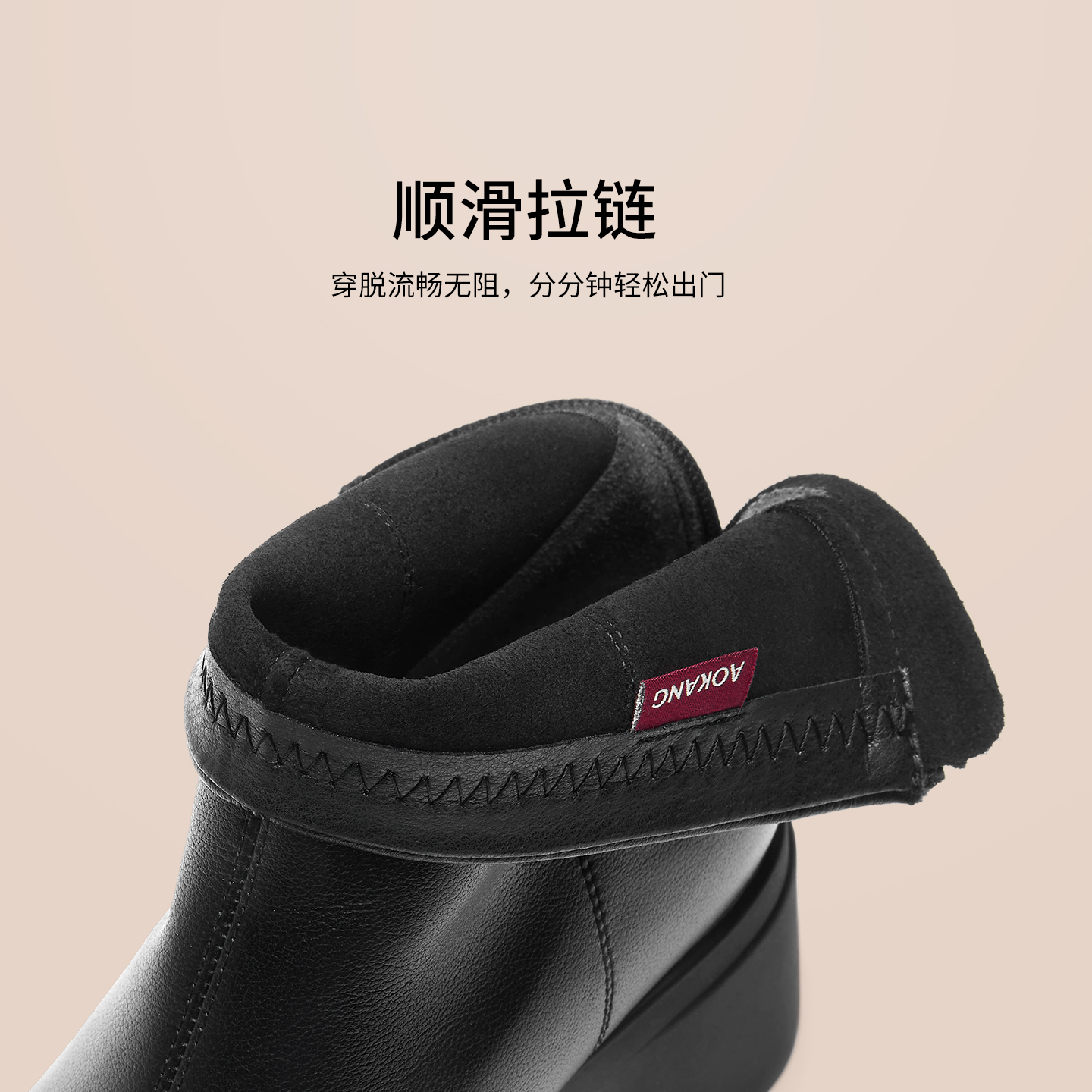 奥康女靴软底短靴妈妈棉鞋加绒洋气中老年皮鞋女鞋子2025冬季新款