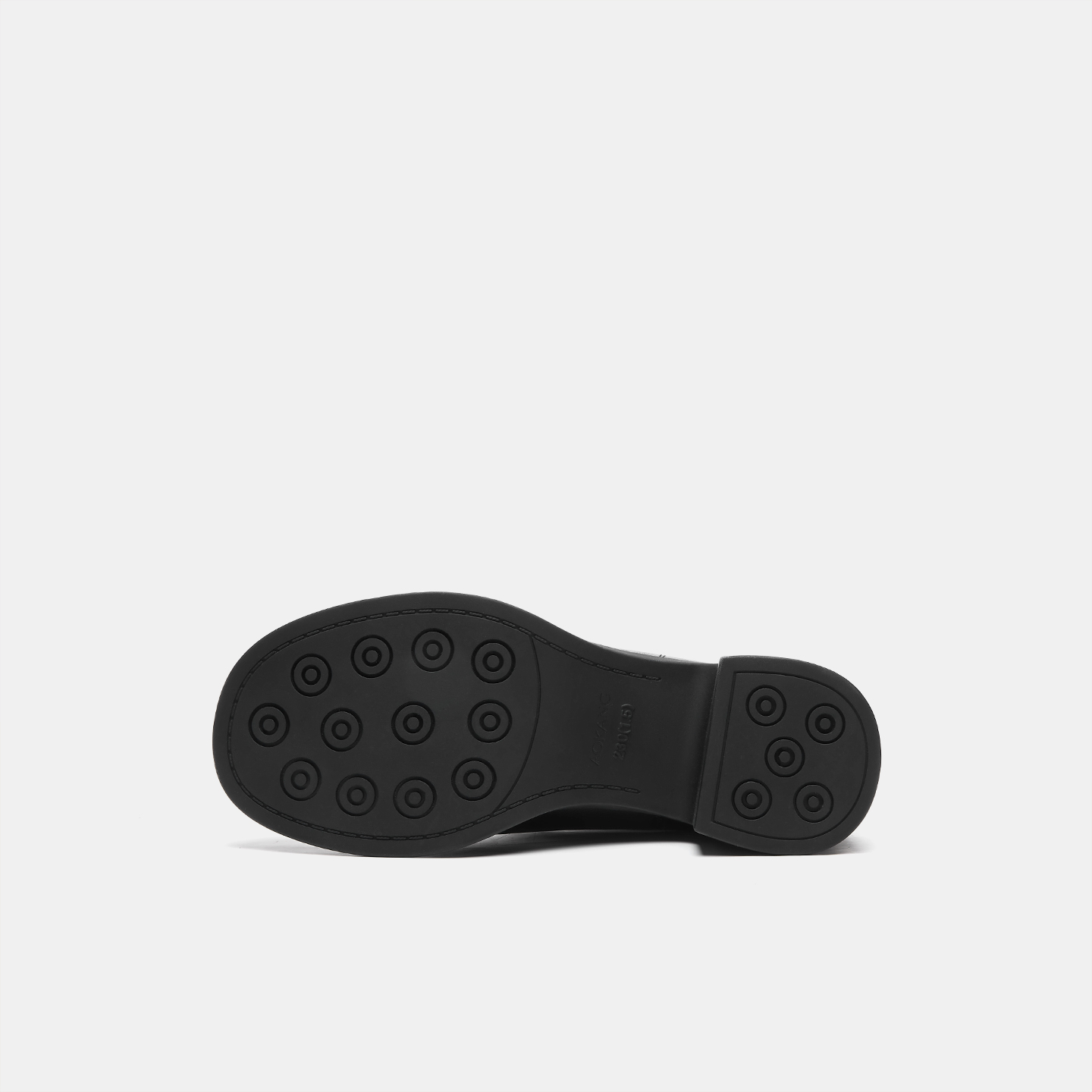 天奥康女鞋春秋复古方扣百搭黑色小皮鞋时尚套脚乐福鞋门店发货