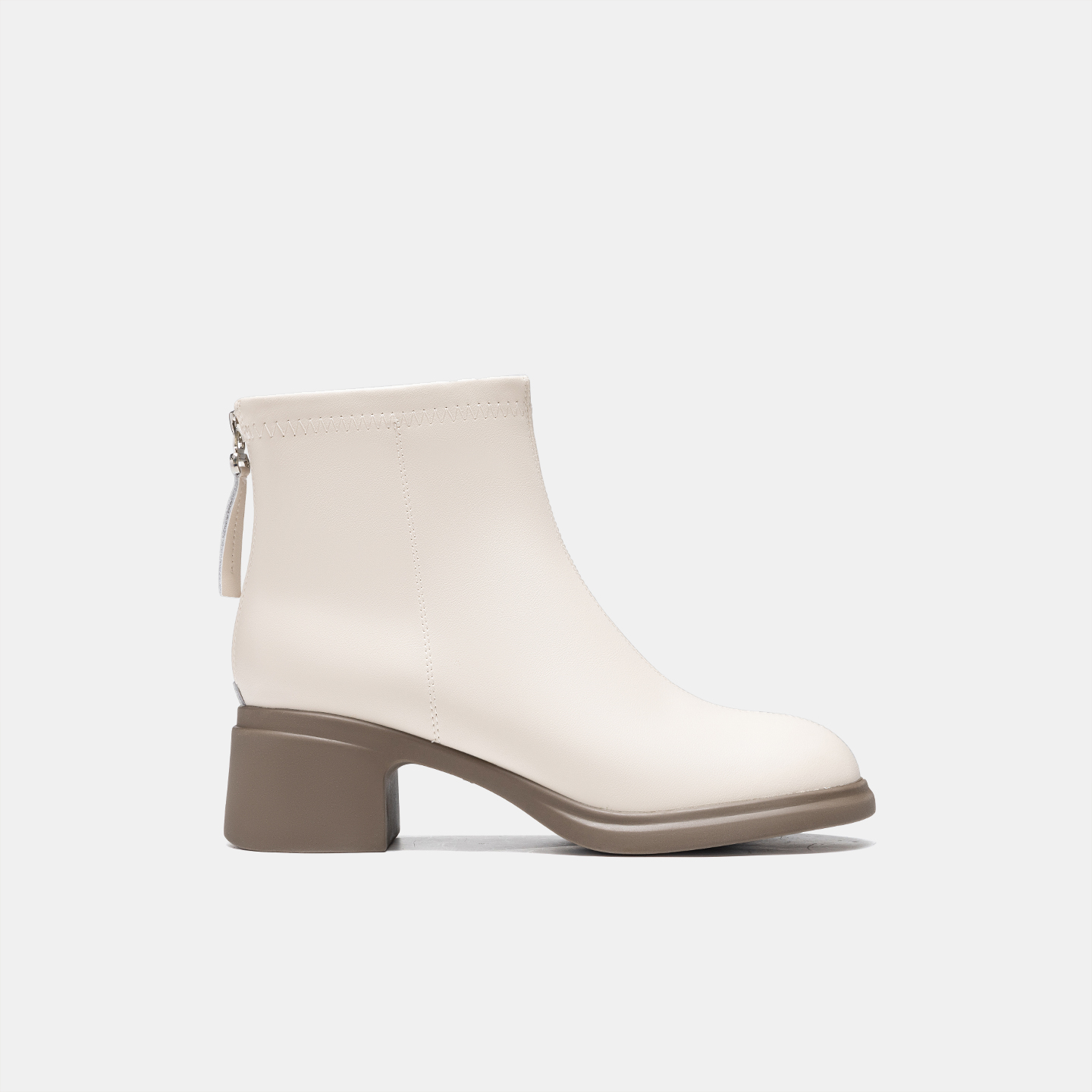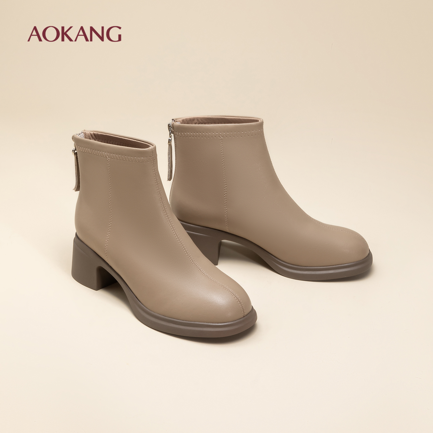 天猫奥康 女鞋冬季加绒保暖软皮瘦瘦靴粗跟时装靴短靴靴子