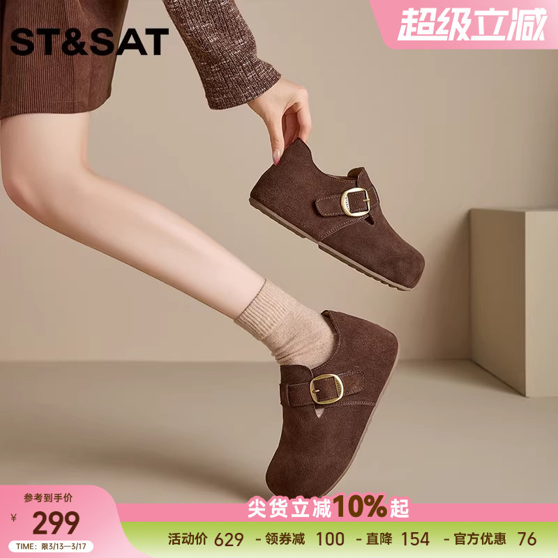 思加图新款梧桐日记玛丽珍鞋平底鞋浅口复古单鞋女鞋EGC02CQ5