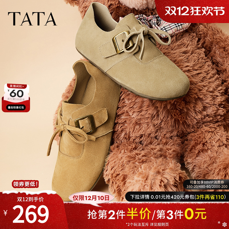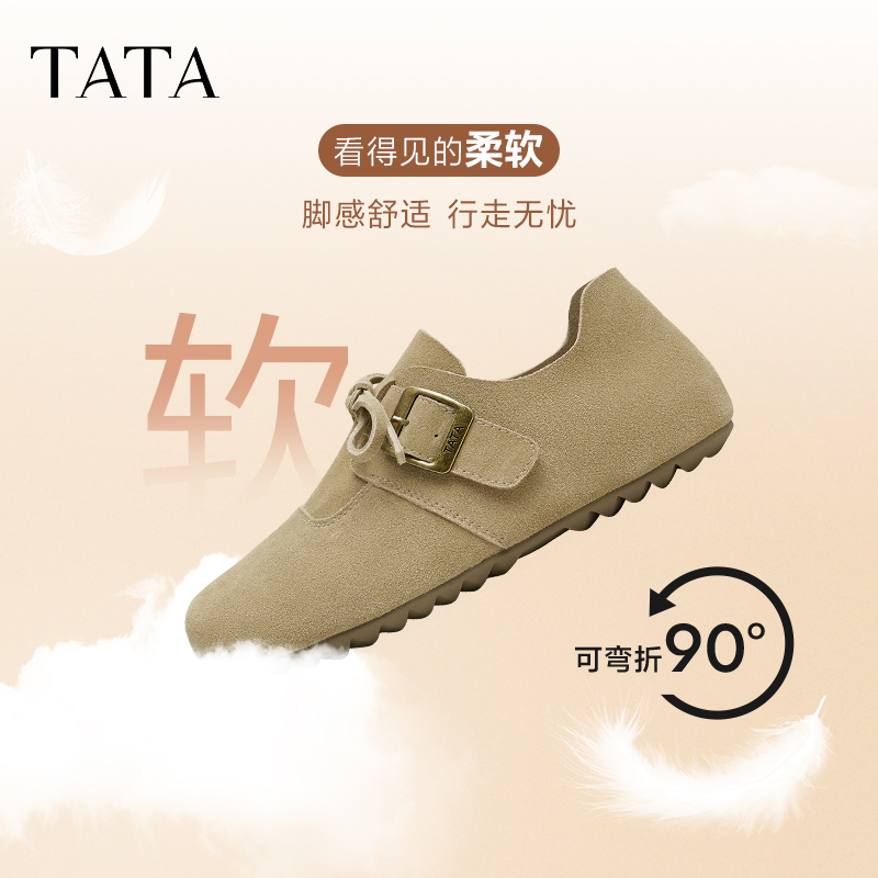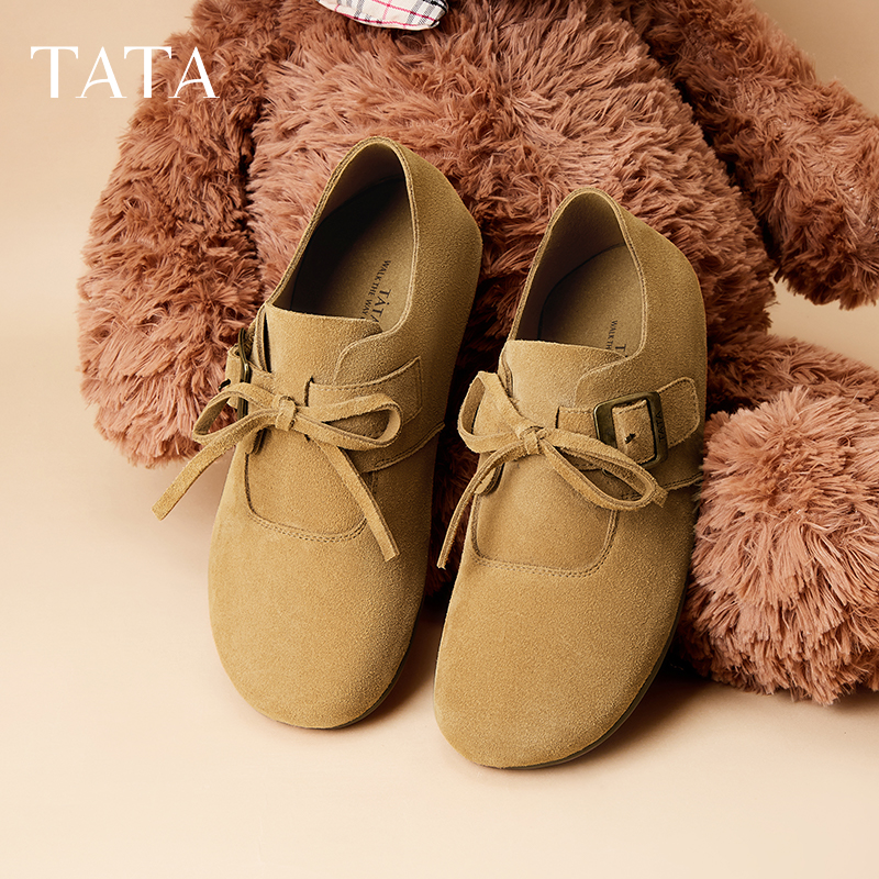 天猫Tata他她小熊复古软底平底勃肯鞋女鞋通勤单鞋2024冬新款CFZ01CM4