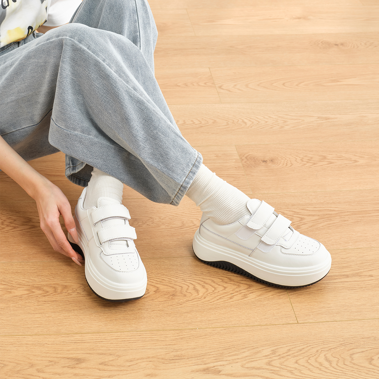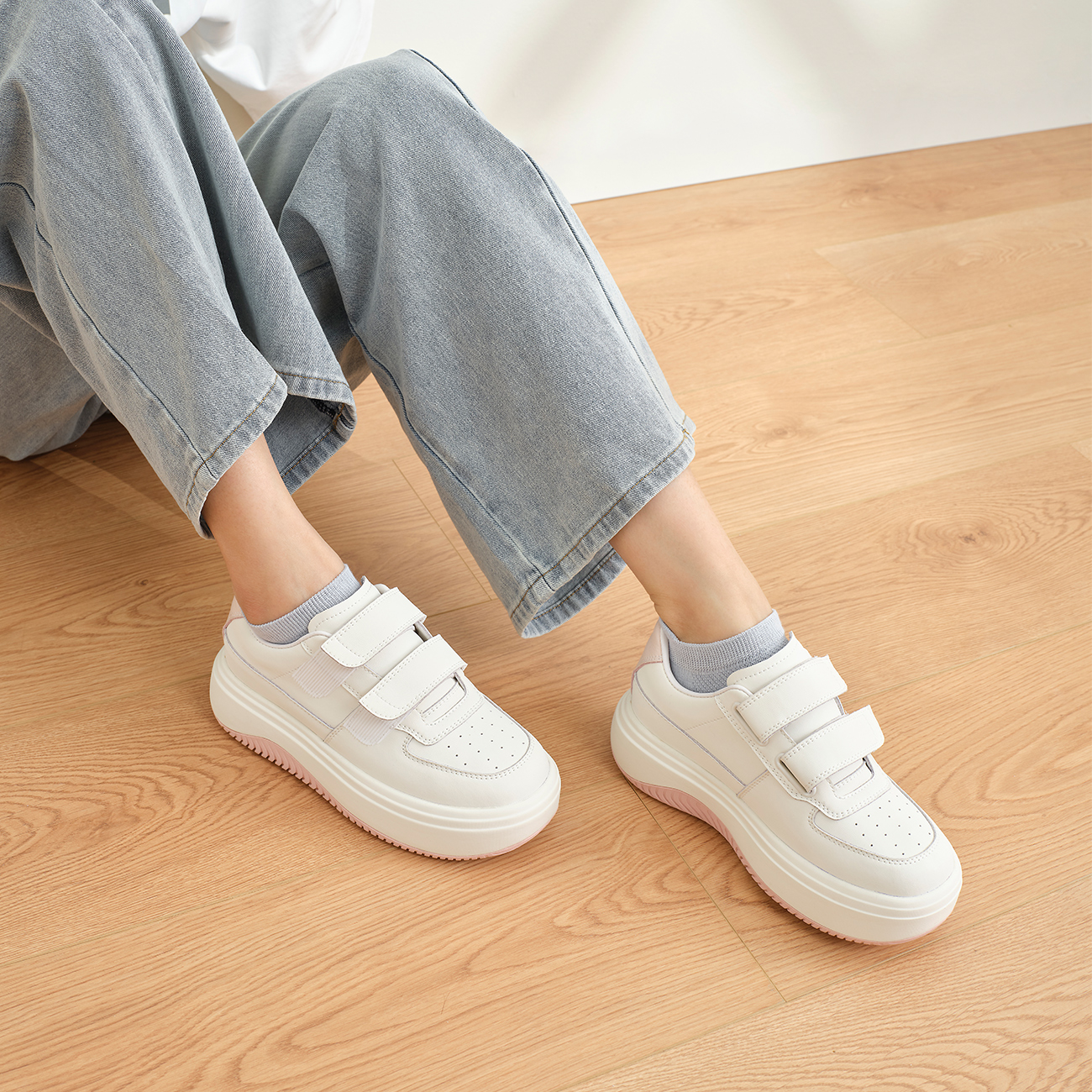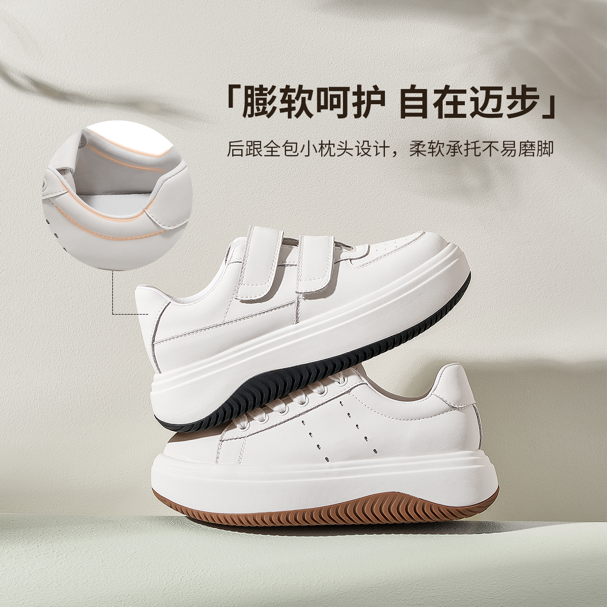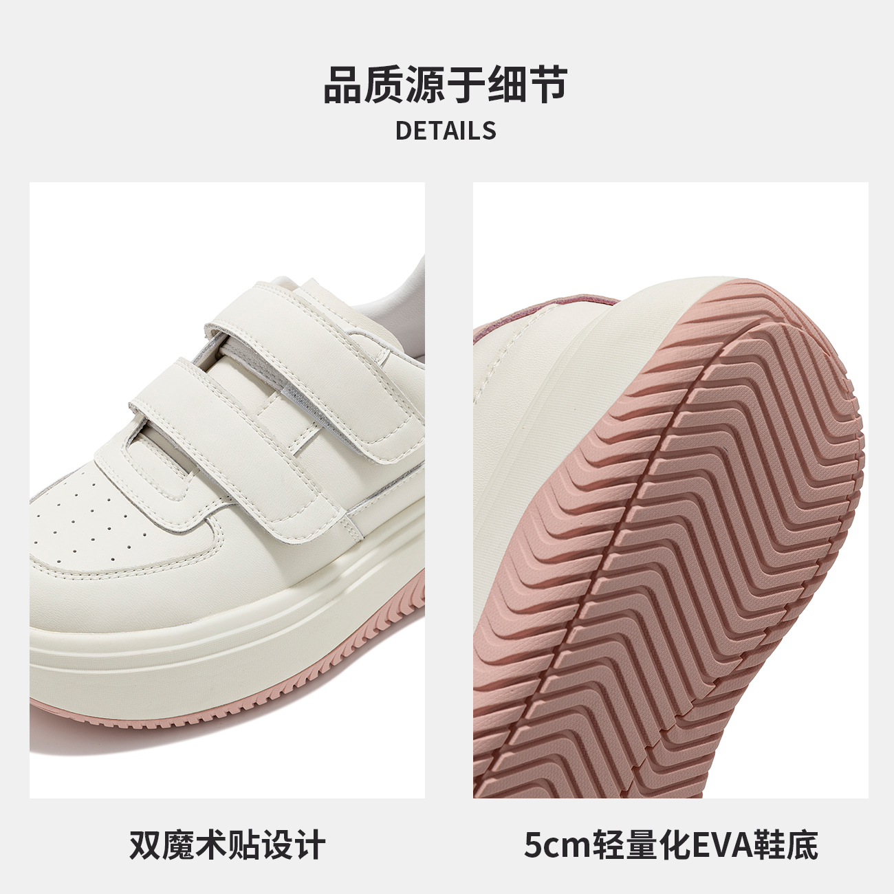 天猫奥康 女鞋2025春秋运动休闲鞋魔术贴厚底透气学生时尚小白板鞋