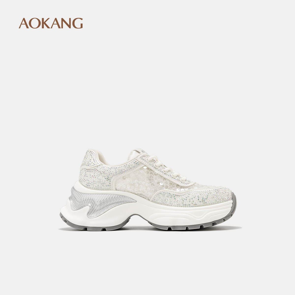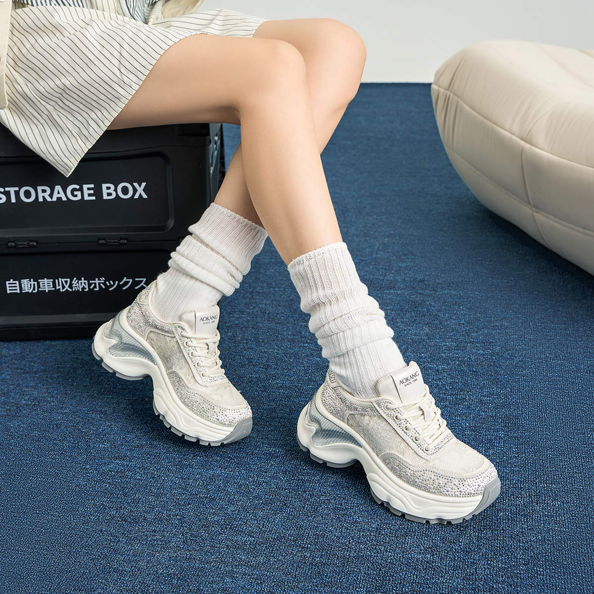 天猫奥康 女鞋2025春秋老爹鞋百搭厚底增高系带踏青休闲运动鞋