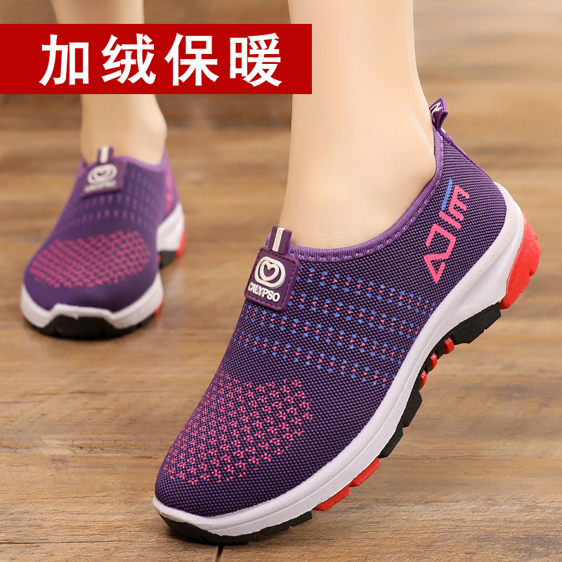 淘宝老北京布鞋女鞋加绒休闲鞋软底防滑一脚蹬保暖女棉鞋中老年妈妈鞋