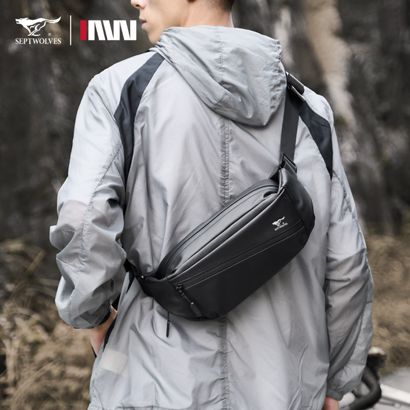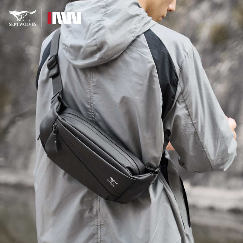 天猫七匹狼潮牌胸包男士运动防水斜挎包潮流骑行背包男新款休闲单肩包
