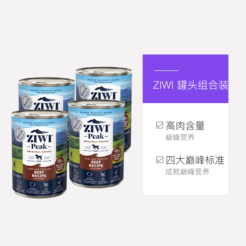 天猫【自营】【临期】ZIWI滋益巅峰高肉狗狗罐头390g*4拌饭效期至26.9