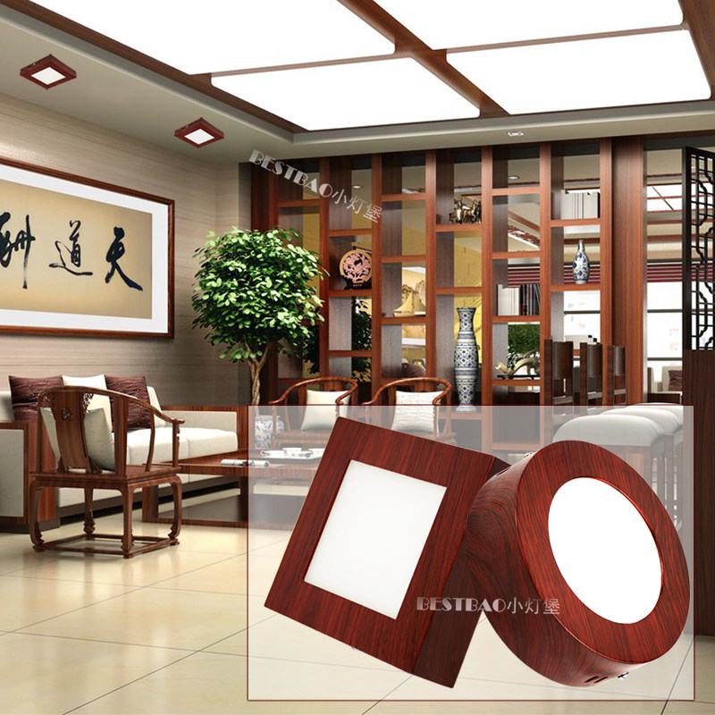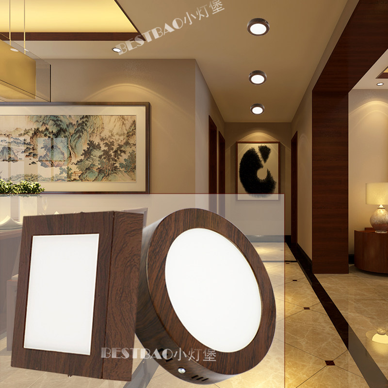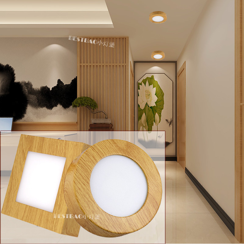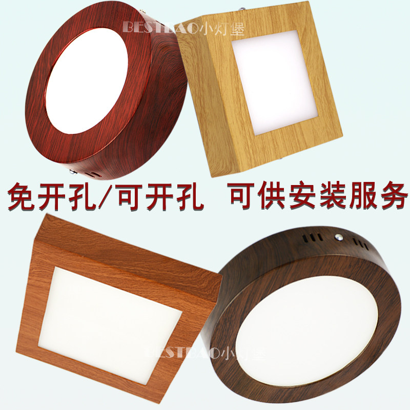 淘宝明装木纹圆形方形超薄筒灯防眩护眼门头飘窗走廊过道免开孔吸顶灯