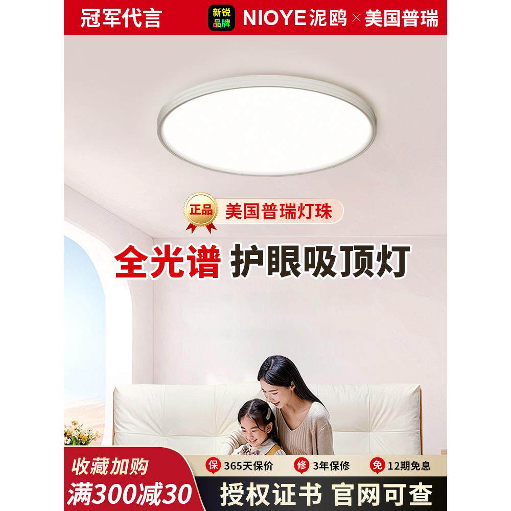 全光谱led护眼吸顶灯主卧室房间灯简约现代超薄儿童客厅书房灯具