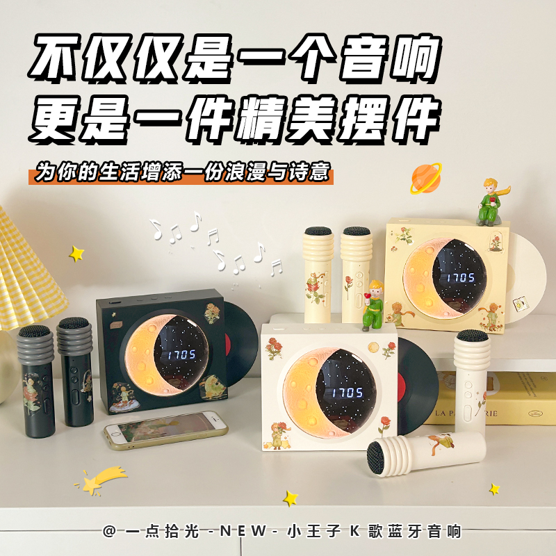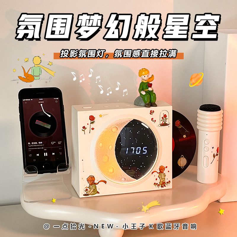 淘宝小王子揽月时钟蓝牙音响k歌小型音箱麦克风一体无线生日礼物男女