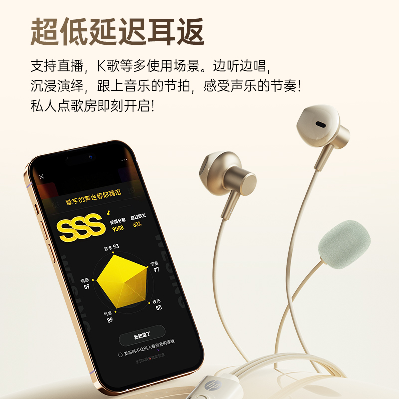 天猫HP惠普K歌有线耳机全民K歌专业声卡耳返直播唱吧高清麦克风二合一