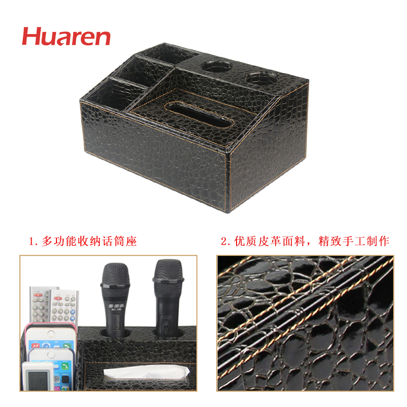 淘宝KTV唛克风话筒座话筒架遥控器桌面收纳盒抽纸盒纸巾盒手机座皮革