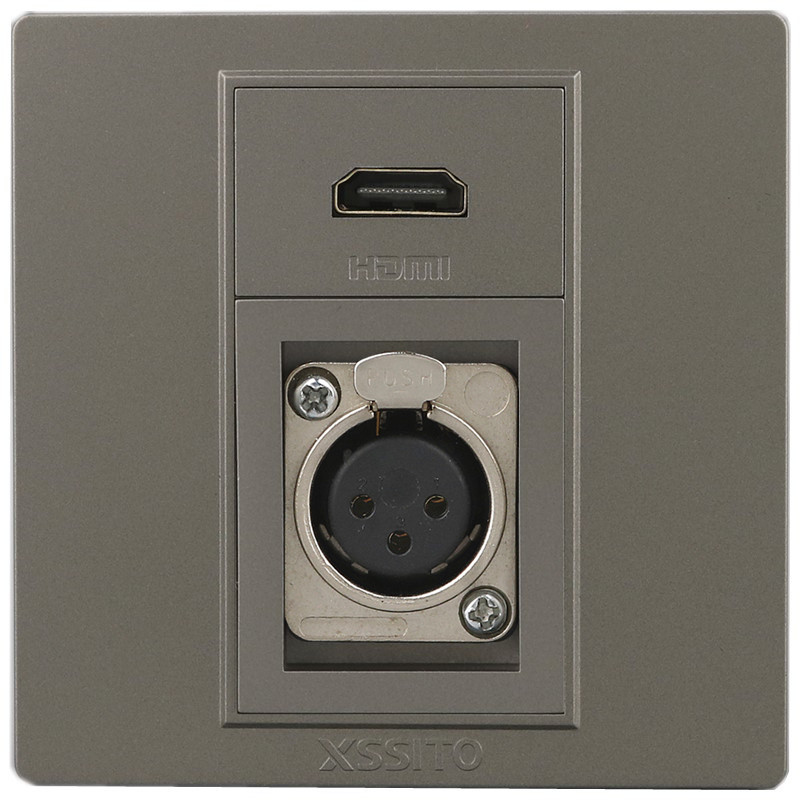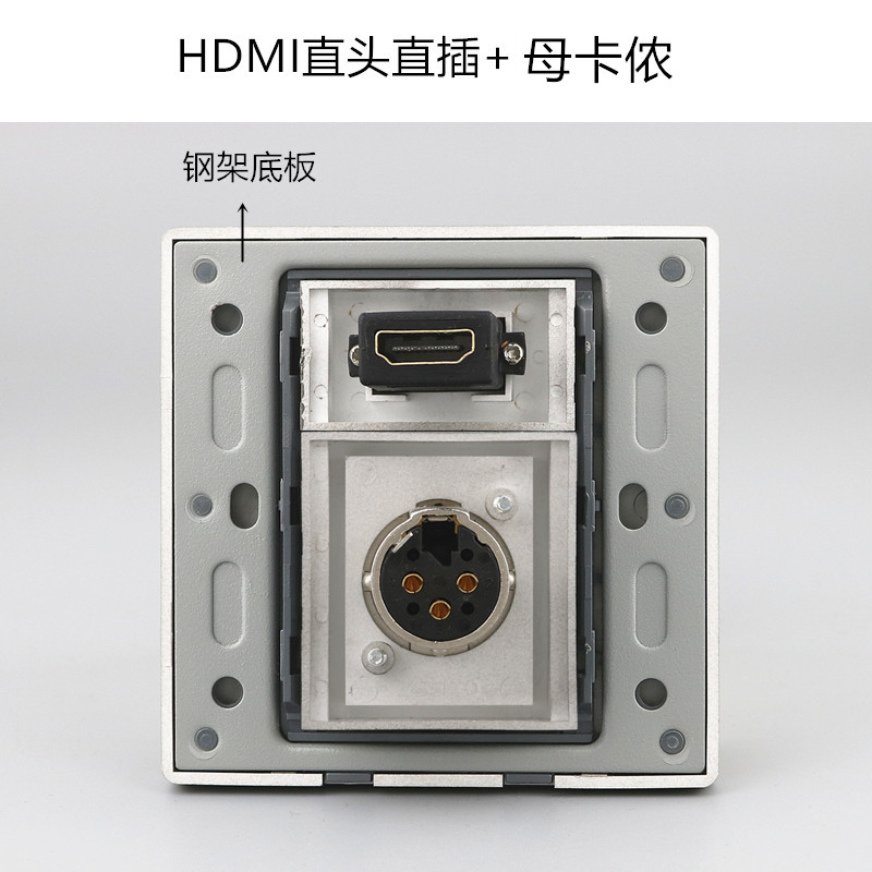 淘宝86型深灰色面板母卡侬话筒加HDMI插座公卡隆麦克风音箱带高清线盒