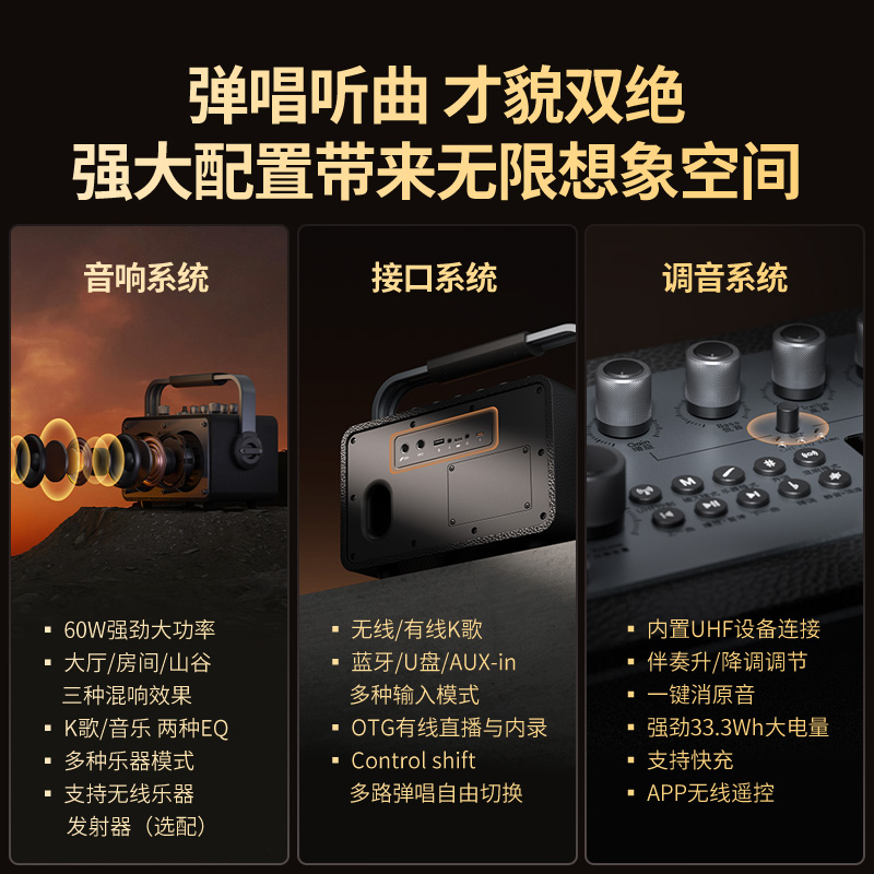 天猫不见不散流浪者S1户外K歌音响麦克风话筒一体机便携式蓝牙小音箱