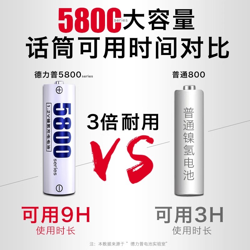 天猫德力普5号充电电池大容量KTV麦克风AAA通用可快充电器1.2V五七7号